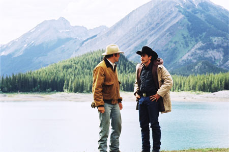 Ang Lee bruker settinger som symboler på indre følelser. Ved de mektige fjellene, slettene og elvene i Brokebackfjellet får Jack og Ennis leve ut sin natur. (Foto/ copyright: Sandrew Metronome Norge) |