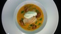Spicy gulrotsuppe med kylling og krutonger