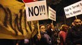 STERK MOTSTAND: Kypriotiske demonstranter markerer sin motstand mot krisepakken utenfor nasjonalforsamlingen i Nicosia.