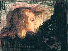 Det sies at Munch med sine "dødsbilder" prøvde å uttrykke smerten han opplevde etter at hans søster Johanne Sofie døde av tuberkolose da Munch var 14 år.