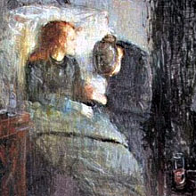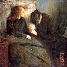 Munchs liv var preget av sykdom, død og lidelse, noe som går igjen i hans bilder. Hans mor døde av tuberkulose da han bare var fem år gammel. Edvard var selv ofte syk, og hans yngre søster hadde psykiske problemer. Han hadde fire søsken. Bare en av dem ble gift, bare for å dø noen måneder etter bryllupet.