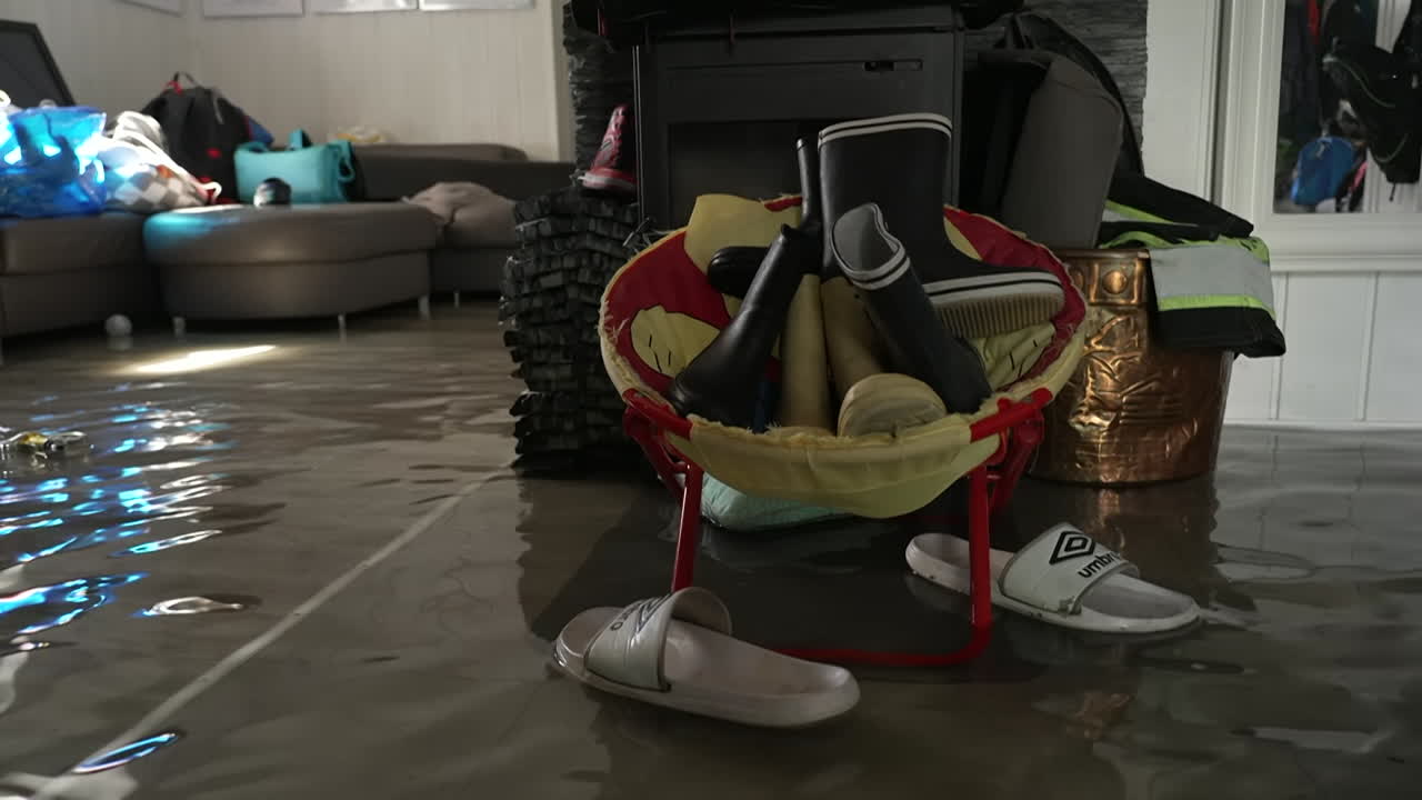 Da vannet kom opp fra kjelleren evakuerte familien seg selv. Torsdag formiddag rant vannet inn i 1.-etasjen.