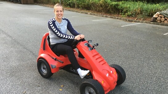 Håndballspilleren Tonje Nøstvold blei ikke raskeste kvinne i trøbilen, men slo i det minste gamletreneren på håndballandslaget.