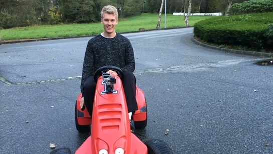 Matias Sivertsvik fra Stavanger har bare seksere på vitnemålet etter videregående skole. I dag leverte han en sterk praktisk eksamen i trøbilen. Men hadde han bare hatt lappen...kunne det fort blitt rekord.