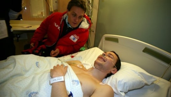 Anders Jacobsen falt stygt under prøvehoppingen i Granåsen i dag. Han pådro seg en liten hjernerystelse.