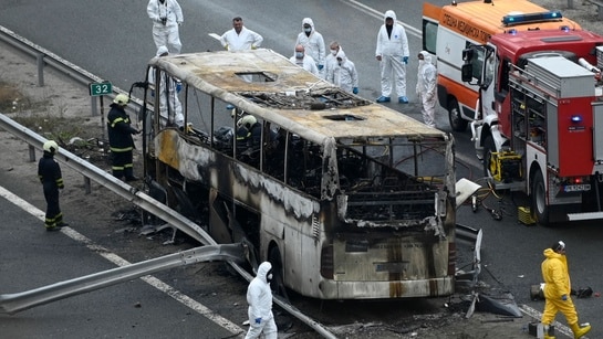 Minst 45 menneske, blant dei tolv born, er døde etter at ein buss tok fyr på ein motorveg i Bulgaria i natt.