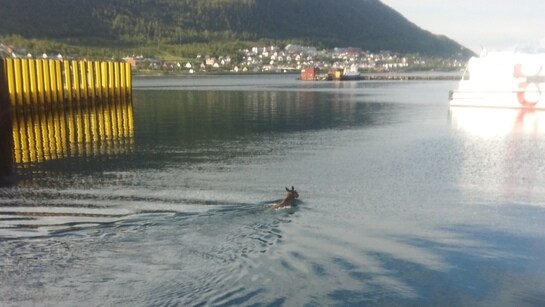 To urbane elg på bytur i Tromsø sentrum i dag.