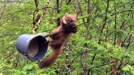 Snakk om flaks! Familien Digernes fekk brått tilskodarplass til måren si utrulege jakt etter fuglematen dei hadde hengt ut.