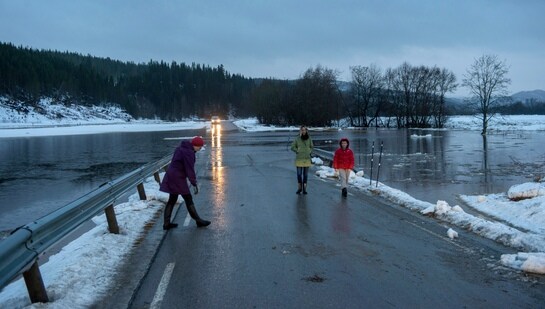 Entreprenører i Nord-Trøndelag jobber på spreng med å strø veger og fjerne snø og is i fylket. De høvler og skraper veger, fjerner slaps, åpner kummer, strør veger og sørger for at vannet renner bort.