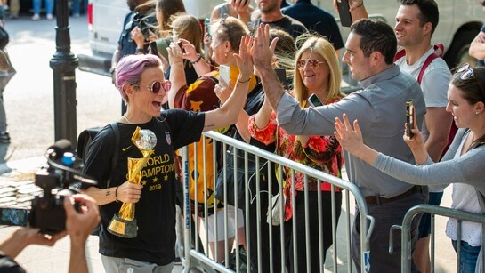 De amerikanske verdensmesterne hylles etter sitt fjerde VM-gull, men i USA tjener de fortsatt betraktelig mindre enn landslaget for menn.