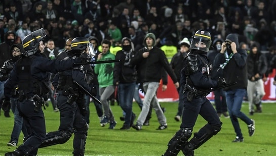Da Nabil Fekir satte inn 5–0 for Lyon og tok av seg skjorta, kokte det over for St. Etienne-fansen.