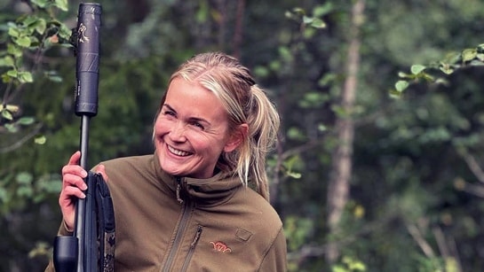Det var under lisensjakten i Sverige at jegeren bosatt i Alta fikk oppfylt drømmen om bjørnefelling. – Jeg rakk ikke bli redd eller nervøs før etter det hadde skjedd, sier Siri Myhra om jaktopplevelsen.