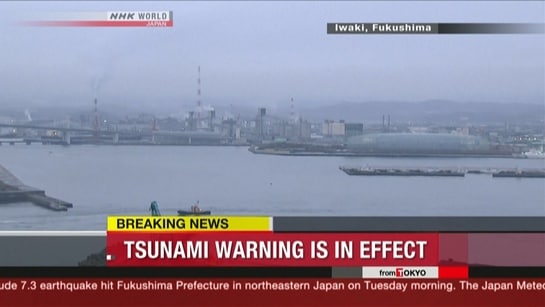 Japan har opphevet tsunamivarselet for nordøstkysten fire timer etter et kraftig jordskjelv utenfor kysten. Den høyeste bølgen som traff land, var på 1,4 meter.