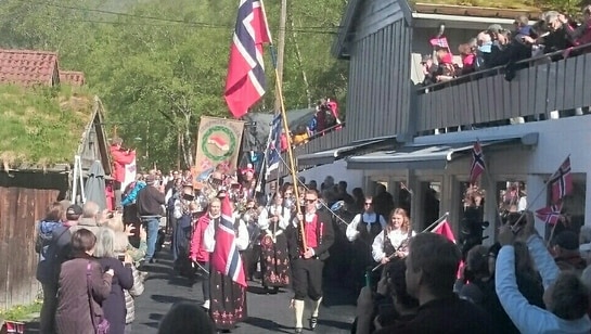 Dei 200 fastbuande i turistperla Geiranger fekk vel 2000 cruisepassasjerar og mange andre på besøk 17. mai.