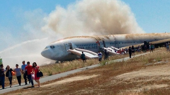 Offentligjorte nødanrop fra livredde passasjerer avslører dramaet som utspilte seg på rullebanen etter krasjlandingen i San Francisco.