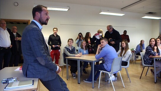 Risør videregående skole fikk besøk av Kronprins Haakon da de gjennomførte Dignity Day onsdag.
