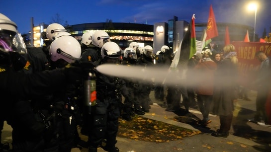 Politiet brukte tåregass mot propalestinske demonstranter og presset dem vekk fra Ullevaal stadion.