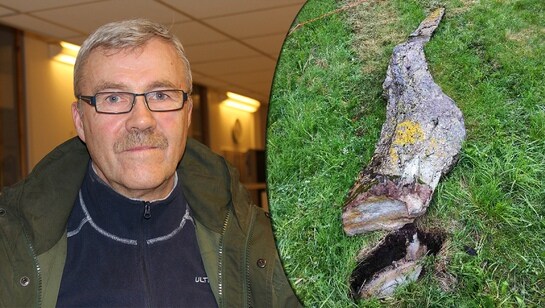 Kunstner Hugo Aasjord er ikke overbevist om at det som en gang var Nord-Norges høyeste bautastein ikke lar seg reparere.