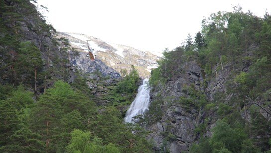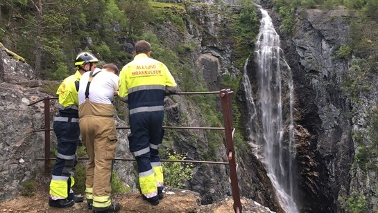 Sea King, alpint redningsgruppe og klatrere søker i området etter mannen. Fossen har et fritt fall på nesten 200 meter.