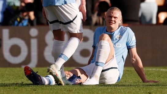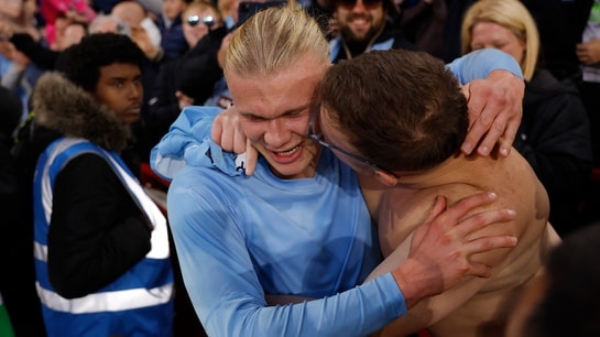 Erling Braut Haaland (24) var sentral på godt og vondt da Manchester City tok seg vidare i kvartfinalen mot Bournemouth. Etter ein time spel måtte han ut med ein ankelskade.