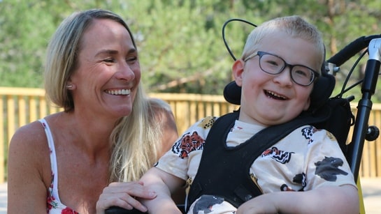 Med den nye turistveien i Fyresdal kan Magnus (5) dra på tur over tretoppene i rullestol. Handikapforbundet mener tilbudet er unikt i Norge.
