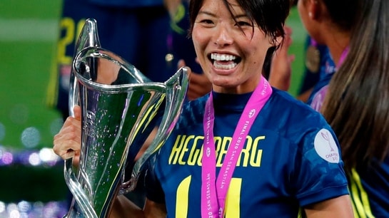 Da Lyon løfta meisterligatroféet søndag kveld var drakta til Ada Hegerberg med på feiringa.