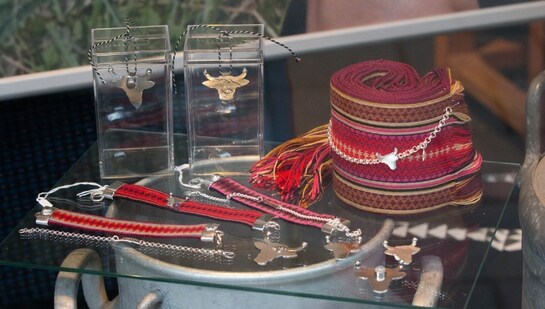 I butikkvinduene hos Husfliden i Skien sentrum har Telemarkskuene tatt over. Hodene kommer i ulike design. Noen har edelstener og andre har mønstre etter rosemaling av Thomas Luraas.