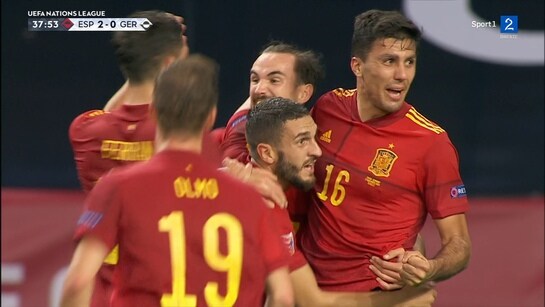 Spania rundspilte Tyskland i gruppefinalen i nasjonsligaen og vant 6-0 i Sevilla med tre mål av Ferrán Torres da tyskerne gikk på sitt største tap siden 1931.
