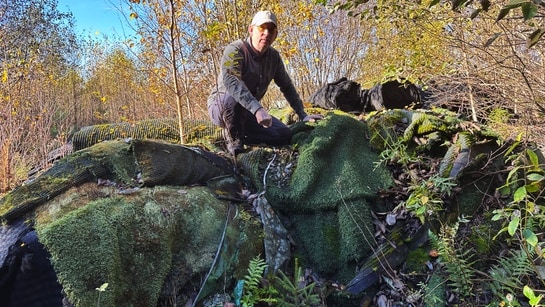 I flere år har flere tonn med kunstgress ligget i et skogholt. Plastpirat Robert Tollefsen hevder det kan gå utover både elver og natur.