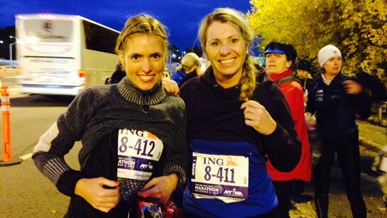 Trude Håland og Anne Røiseland Molstad er to av 45.000 løpere som i dag skal slite seg gjennom 4,2 mil.