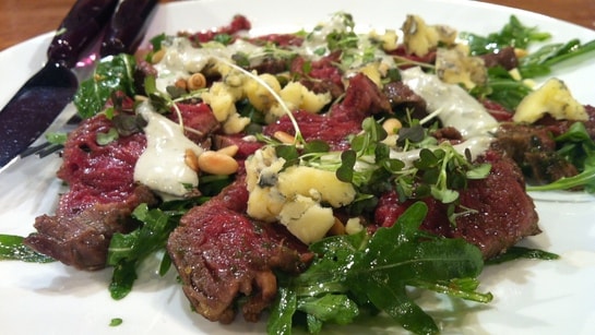 Hanne Frosta og Christer Berens lager en velsmakende forrett eller smårett som består av oksefilet med god marinade og dressing med blåmuggost.