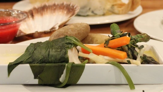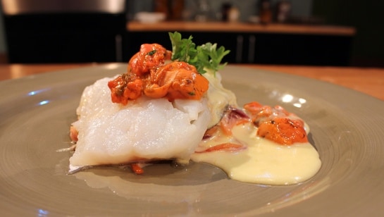 Heine Totland er gjest i Førkveld. Han lager mat sammen med Hanne Frosta, og da handler det om sjømat. Sei innpakket i ramsløk kan lages i vanlig stekeovn eller i en dampkoker.