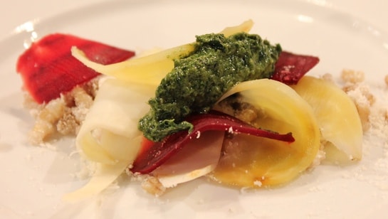 Elin Kvamme forteller at ekte italiensk pesto skal lages for hånd i en morter. En god italiensk husmor bruker et kvarter på å lage en ordentlig pesto. Elin bruker trekniv når hun trenger å samle pestoen, for det skal heller ikke brukes redskap av metall. Hanne Frosta lager norsk vintersalat med bygg og rotgrønnsaker.