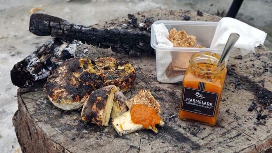 Når Inge Johnsen skal kose seg skikkelig på tur varmer han ost i glørne fra bålet. Han bruker helst en god hvitmuggost fra en lokal produsent. Alternativene er brie eller lignende ost fra butikken.