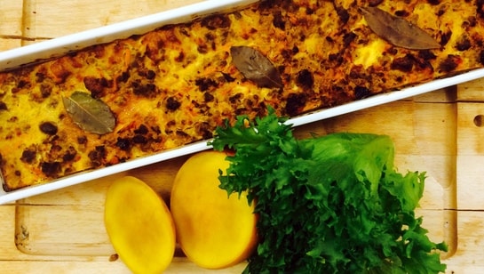 Bobotie er en tradisjonsrik rett fra Sør-Afrika. Mange omtaler den som nasjonalretten. Det er en slags grateng med kjøttdeig av antilope. Siden du sannsynligvis ikke har antilope tilgjengelig, kan du bruke okse, lam, elg eller rein. Det er mange smaker i denne oppskriften, men den er ikke sterk.
