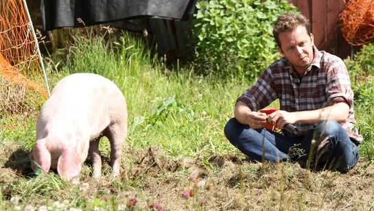 Andreas Viestad lager lake til svinet, og legger pepperkorn på grillen for å røyke nakkekotelettene.