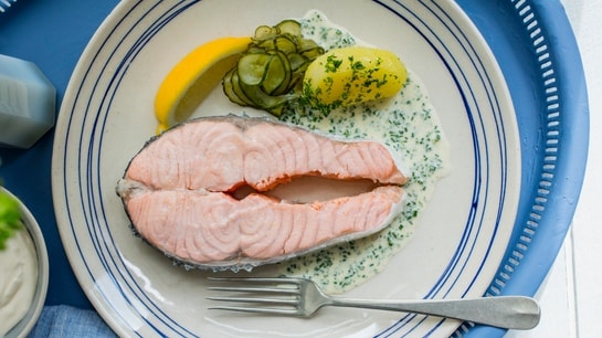 Kokt kald laks med agurksalat og pisket rømme er tradisjonsmat på 17. mai for mange. Og det smaker himmelsk hele sommeren. Lett å lage, kaldt, friskt og masse god smak.