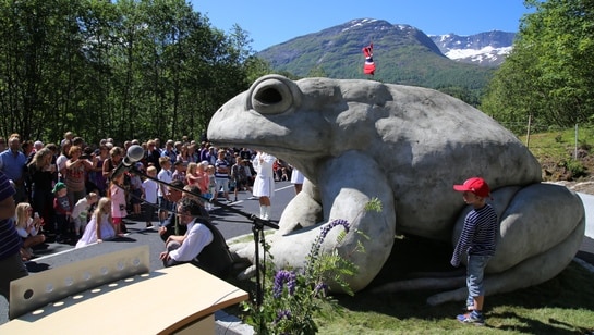 Austefjorden (NRK): Nå skal en av Skandinavias største paddebestander bli turistattraksjon – frontet av en 2,5 meter høy paddestatue i ren betong.