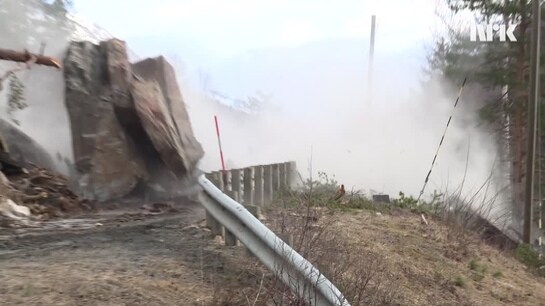 Store steinblokker dundra nedover fjellsida då vegvesenet starta oppryddingsarbeidet i Gråura. Nabo Ingebrigt er ikkje overraska over raset som gjekk på laurdag.