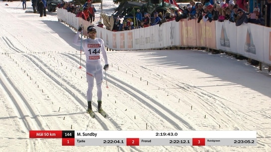 Ingen over, ingen ved sida. Ikkje eingong ein muskelstrekk kunne hindre Martin Johnsrud Sundby i å utklasse alt og alle av konkurrentar i NMs femmil i klassisk stil.