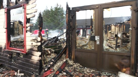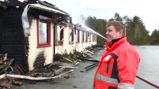 Det var tøft for mange i lokalsamfunnet på Smøla å se at ungdomsskolen sto i full fyr mandag.