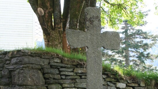 Den eldgamle steinkrossen i Eivindvik knakk i to, og kommunen vil setje den opp att der den stod ved kyrkja. Men universitetsmuseet i Bergen blånektar. Dei meiner det vil vere for farleg, både for folk og steinkross.