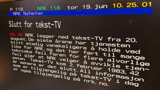 NRK legger ned tekst-TV fra 20. august. Avvikler tjenesten på grunn av faren for alvorlige feil.