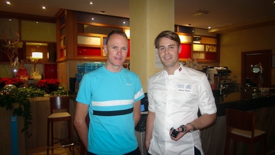 Sjømatkokken Adrian Løvold fra Trondheim ga mattips til Tour de France-vinneren Chris Froome, da verdens beste sykkellag hadde treningsleir på Mallorca.