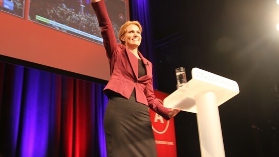 KØBENHAVN (NRK.no): Til trampeklapp og øredøvende jubel ble Danmarks nye statsminister Helle Thorning-Schmidt hyllet av sine egne.