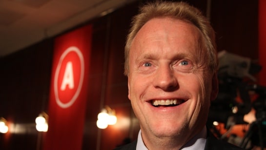 KØBENHAVN (NRK.no): Arbeiderpartiets partisekretær Raymond Johansen jubler over det som ser ut til å bli valgseier, på søsterpartiet Socialdemokraternes valgvake i København.