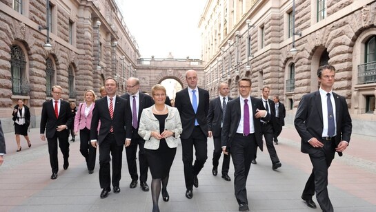 Fredrik Reinfeldt presenterte sju nye statsrådar då han la fram regjeringserklæringa si i dag.