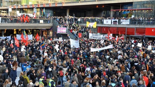 Opptil 4.000 mennesker deltok mandag i en demonstrasjon i Stockholm mot Sverigedemokraternas inntog i Riksdagen.