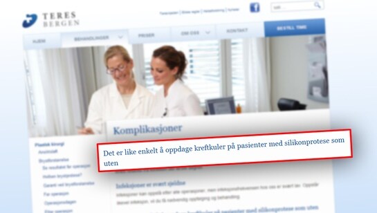 At Teres-klinikkar som utfører brystforstørringar skriv at implantat kan gjere det lettare å oppdaga brystkreft, vekkjer reaksjonar hjå leiaren i Norsk Bryst Cancer Gruppe.