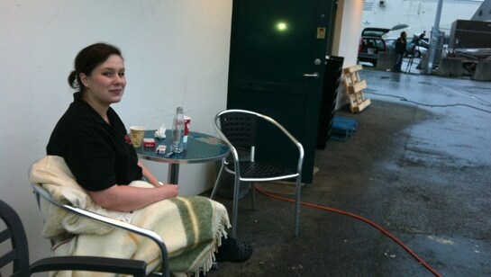 Hurtigruta ligg mørk med berre nokre lys på sidene. Ved Skansekaia sit Camilla Samsing og trekk pusten etter ein hektisk dag på jobb ved gatekjøkkenet Stuen, som er no blitt næraste nabo til eit område mange no rettar si merksemd mot.